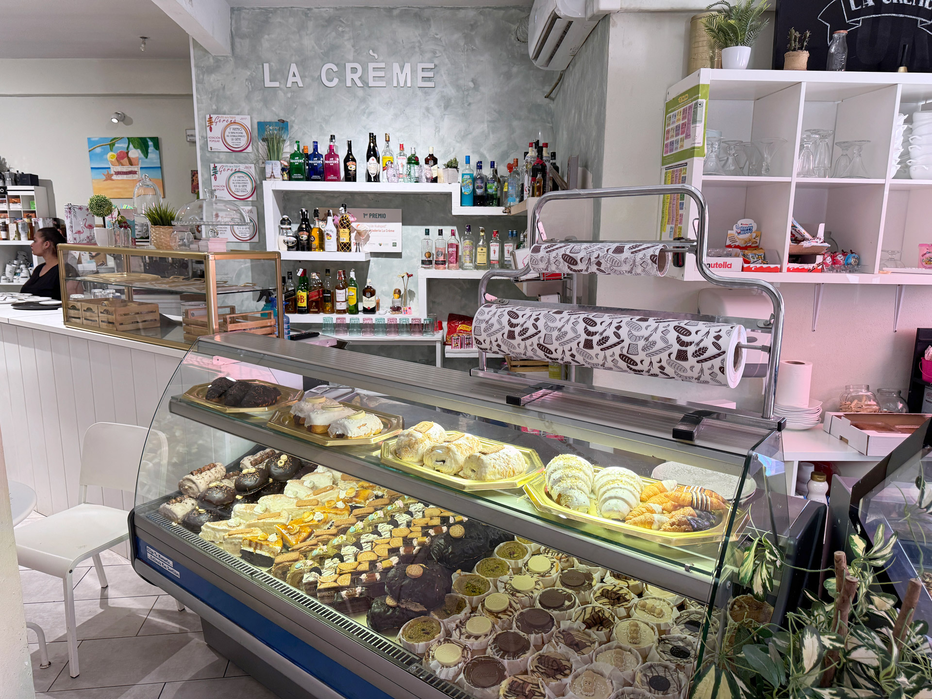 Tu merienda o desayuno en La Creme, Gerena. Helados artesanos, pasteles, bollería, copas y mucho más.